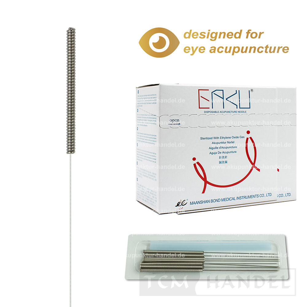 Die EAKU Akupunkturnadeln 10R-Type EA mit Stahlwendelgriff ohne Öse für die Augenakupunktur, sind aus medizinischem Edelstahl gefertigt und garantieren ein sanftes Einstechen in die Haut. Durch die speziellen Eigenschaften des verwendeten Stahls und des spezielle Spitzenschliffs sind diese Nadeln hervorragend für die Augenakupunktur geeignet. Überzeugen Sie sich von der hervorragenden Qualität dieser Premium Akupunkturnadeln und profitieren sie vom Top-Preis-Leistungsverhältnis.